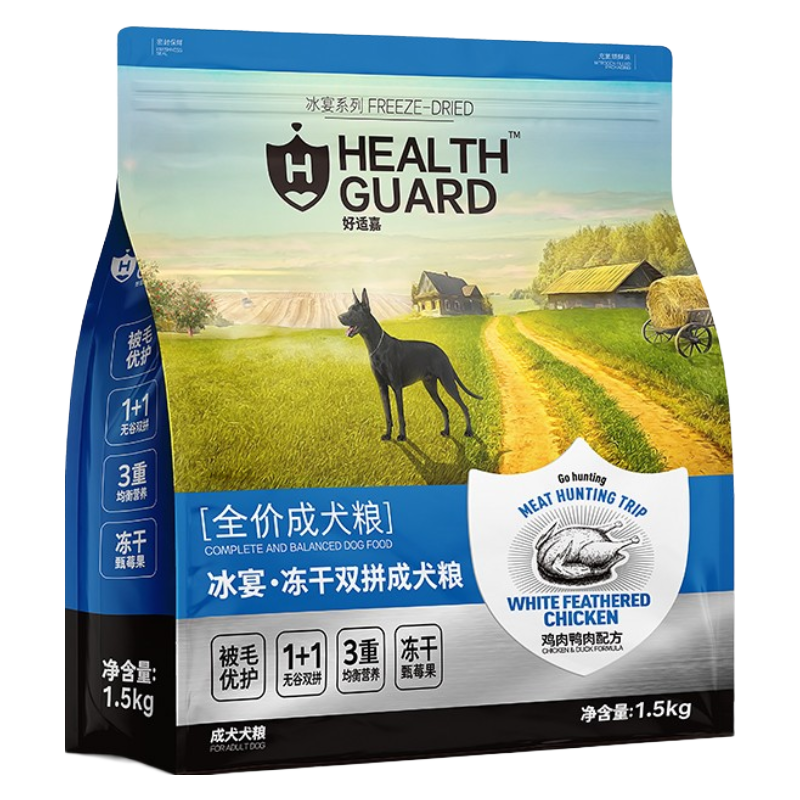 好适嘉(HEALTH GUARD)HG好适嘉冻干双拼狗粮 冰宴全价3重营养美毛无谷冻干成犬幼犬主粮 冰宴冻干成犬粮10kg