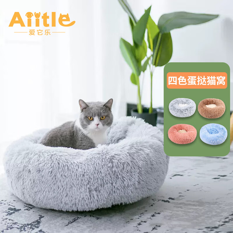 爱它乐 猫窝七色蛋挞猫狗窝狗垫子冬季保暖猫屋四季通用加厚加绒猫床猫舍宠物窝 粉色50cm