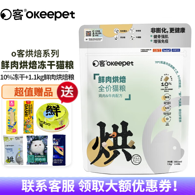 o客猫粮宠物冻干生鲜猫粮高吸收幼成猫全价英美短布偶无谷鸡肉鲜肉粮 【鲜肉烘焙】鸡肉