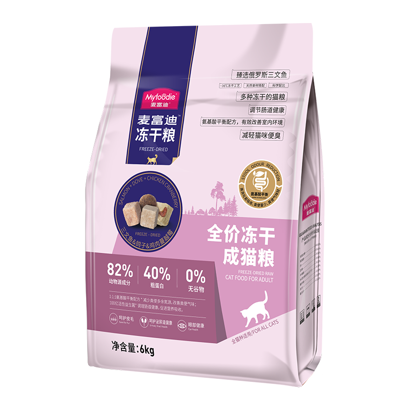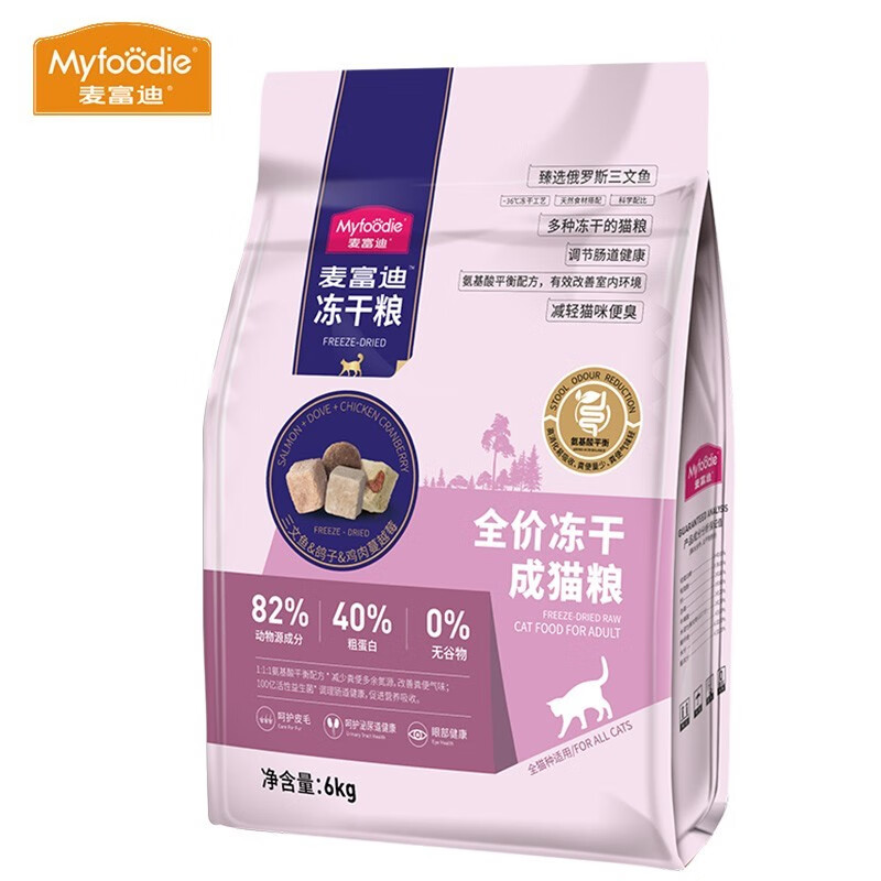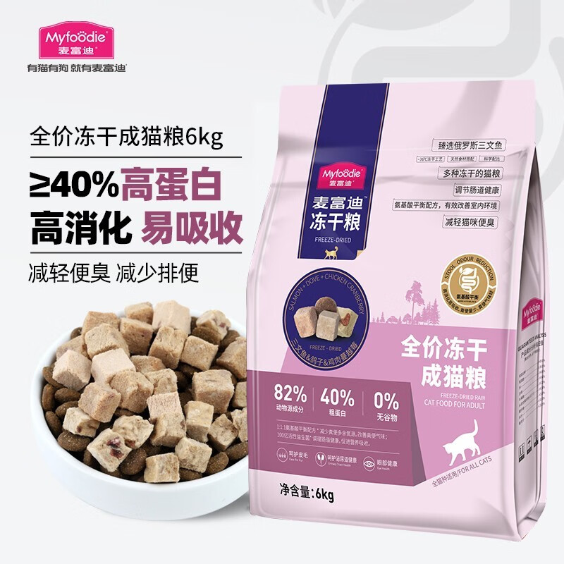 麦富迪冻干猫粮 冻干三鲜猫粮成猫全价冻干无谷主食猫粮蓝猫美短英短布偶通用猫粮 三文鱼鸽子蔓越莓成猫(6kg)