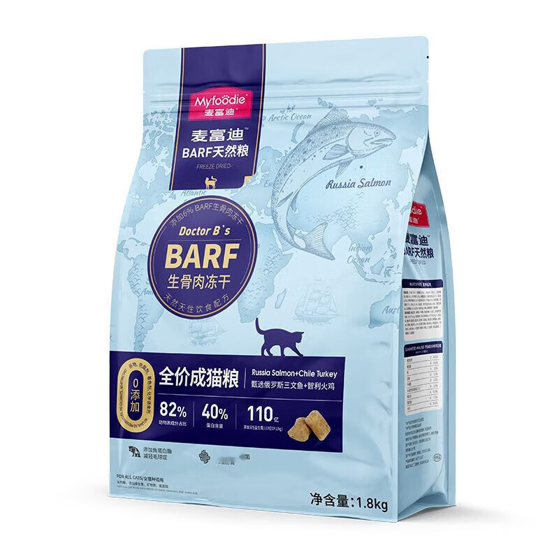 麦富迪(MYFOODIE)barf系列幼猫粮霸弗生骨肉冻干天然粮营养高蛋白幼猫专用粮 牛肉鳕鱼冻干幼猫粮1.8kg
