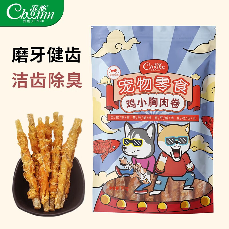 宠怡狗狗零食狗咬胶鸡小胸肉卷90g磨牙棒宠物洁齿泰迪金毛成犬幼犬训犬奖励 6包