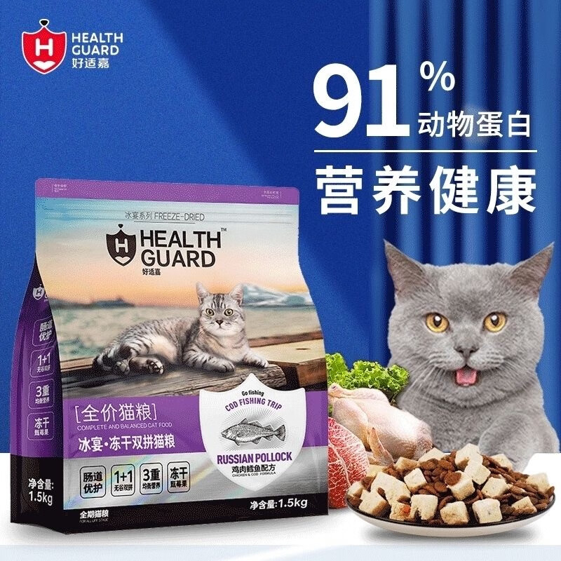 好适嘉(HEALTH GUARD)冰宴冻干双拼无谷猫粮调理肠胃1.5KG 全价双拼猫粮1.5KG