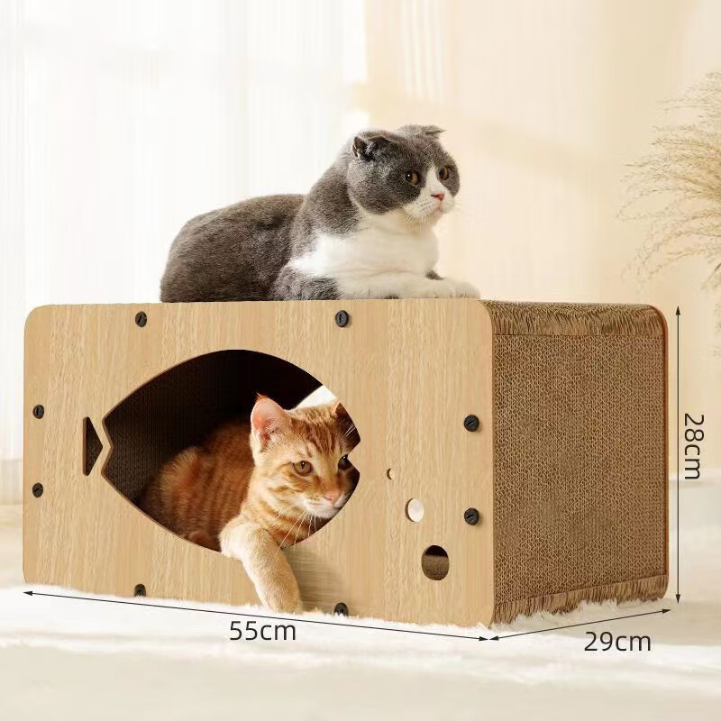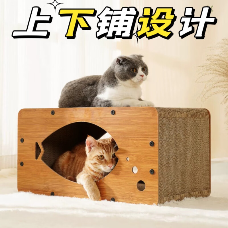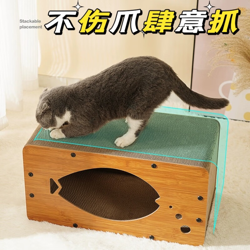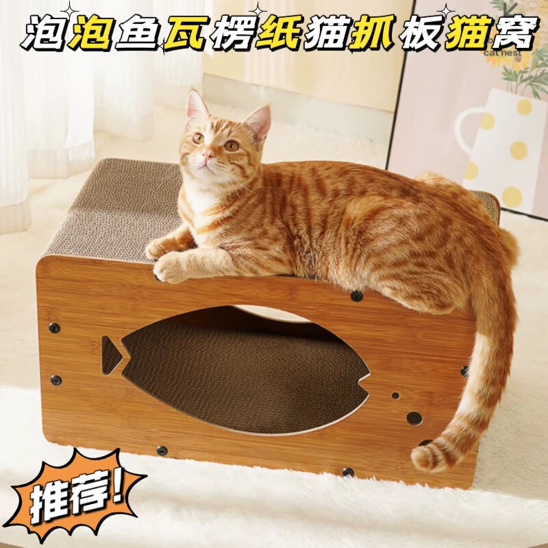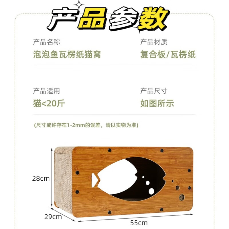 泡泡鱼猫窝双层猫抓板一体立式双层瓦楞纸耐磨不掉屑多功能磨爪器 泡泡鱼猫抓板猫窝