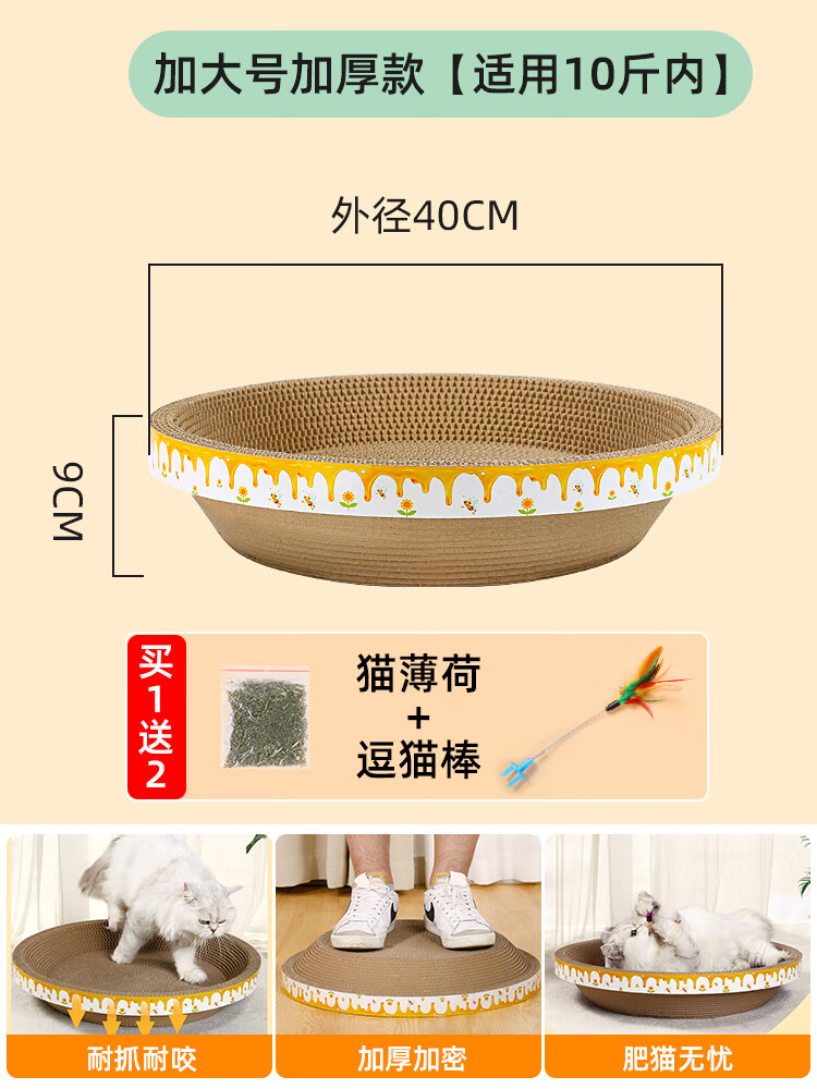 猫抓板猫窝一体耐磨耐抓不掉屑圆形特大号瓦楞纸立式板盆猫咪玩具 (直径41c/m)普通瓦楞纸 贈猫6