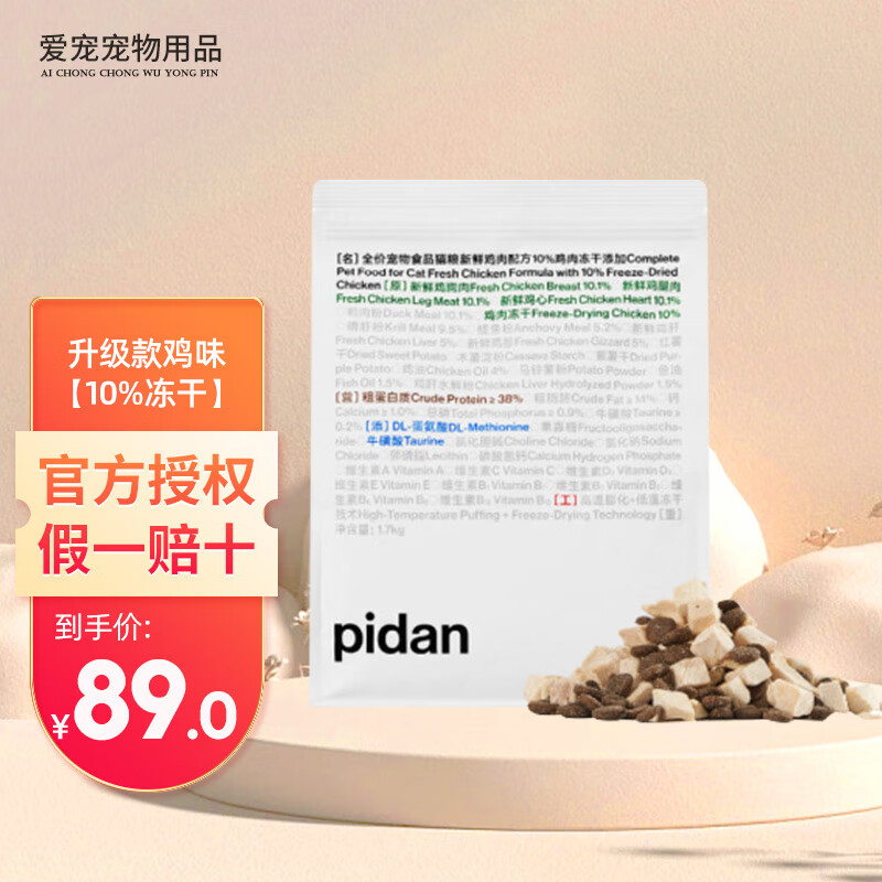 pidan皮蛋猫粮全价低温烘焙猫粮鸡鸭鱼肉全期成幼猫主粮1.7kg 鸡肉味【10%冻干】1包