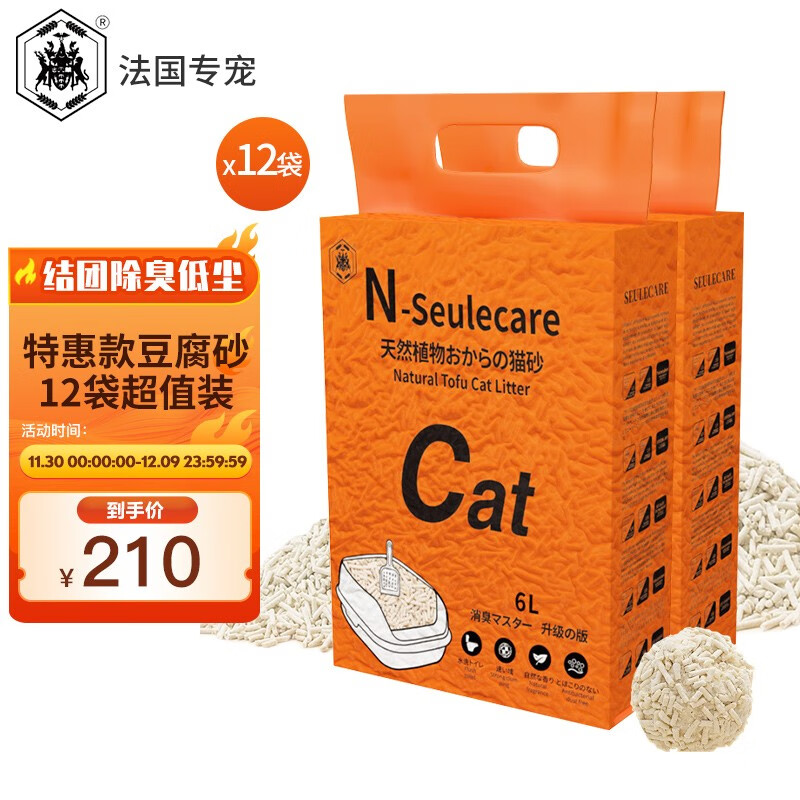 专宠法国专宠豆腐猫砂原味除臭无尘抑菌结团留香成幼猫咪宠物家用 原味6L【闪电结团】特惠装12袋