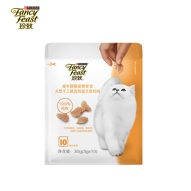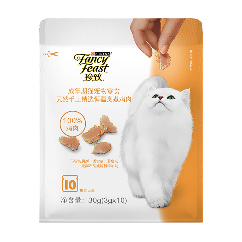 珍致猫零食成猫幼猫100%天然纯肉手撕肉干 恒温烹煮鸡肉30g(3g*10)
