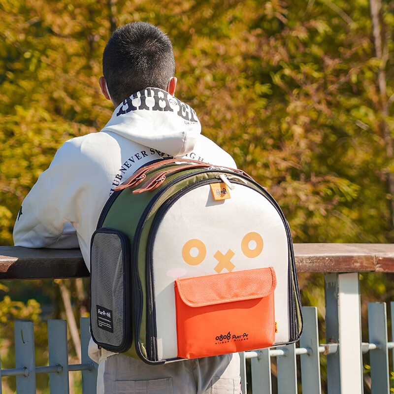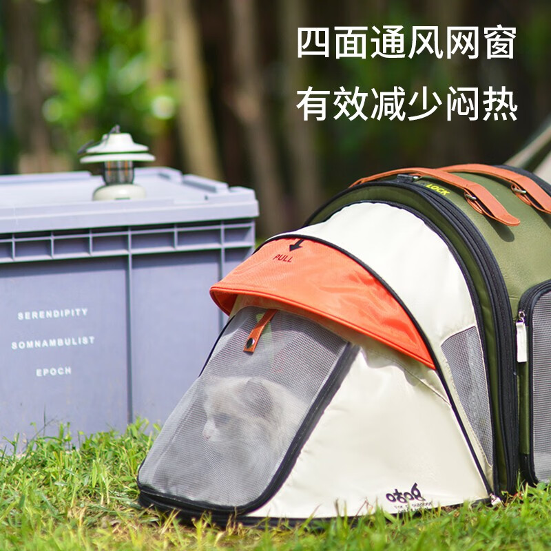 咕噜 猫包可折叠宠物帐篷户外双肩猫咪包大号狗猫窝外出便携狗背包 橙绿-16斤以下宠物适用