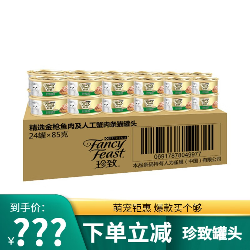 珍致(FancyFeast)猫罐头湿粮 泰国进口 金枪鱼肉及蟹柳棒85g*24罐