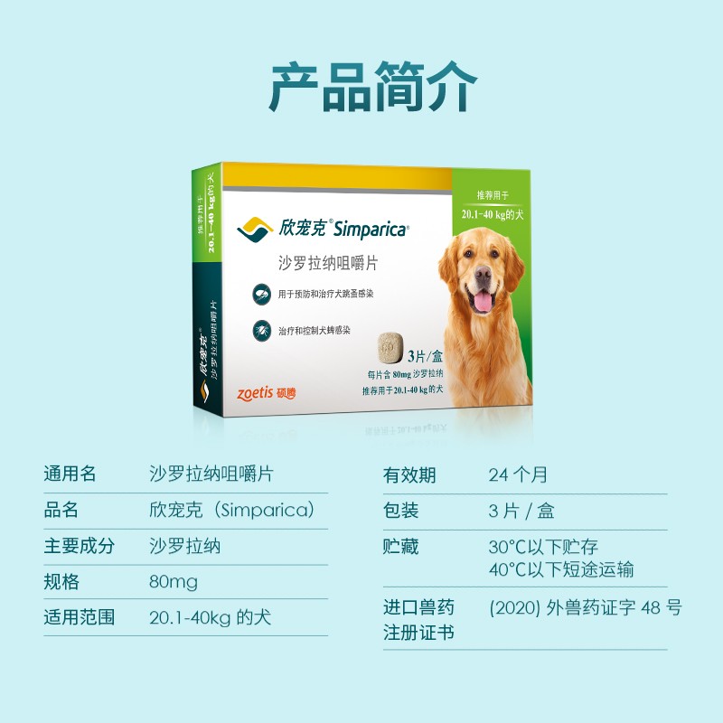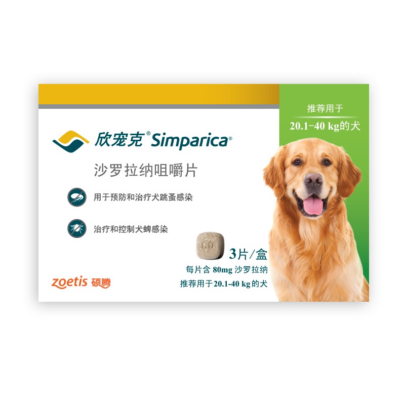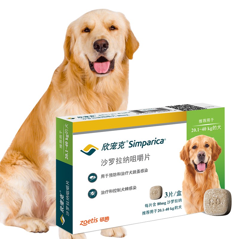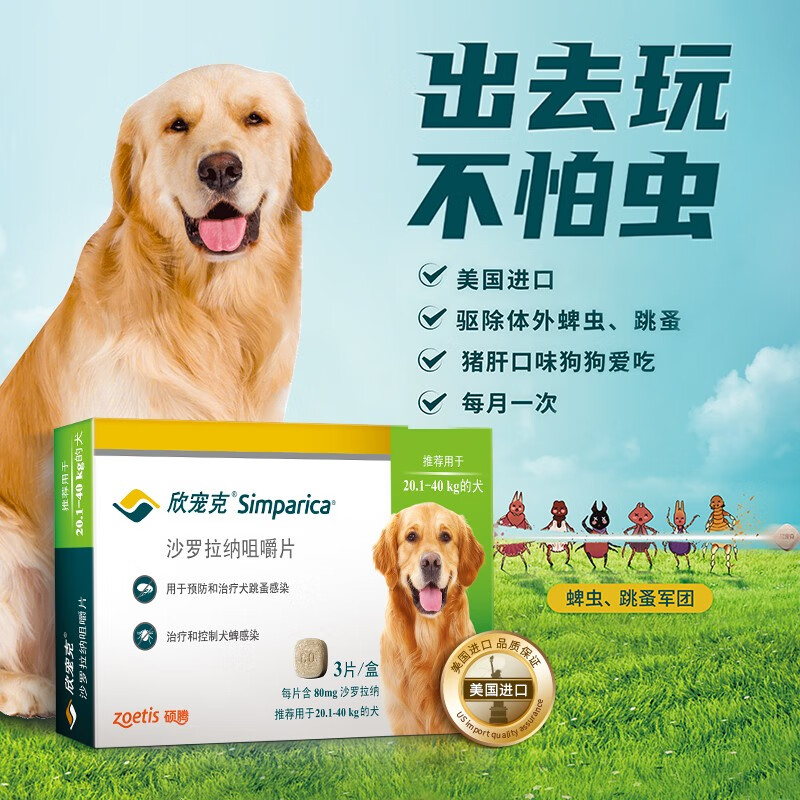 欣宠克 宠物狗狗体外驱虫药品 金毛萨摩耶内服驱虫 去跳蚤蜱虫 20.1-40kg中大型犬3粒装/盒 美国进口