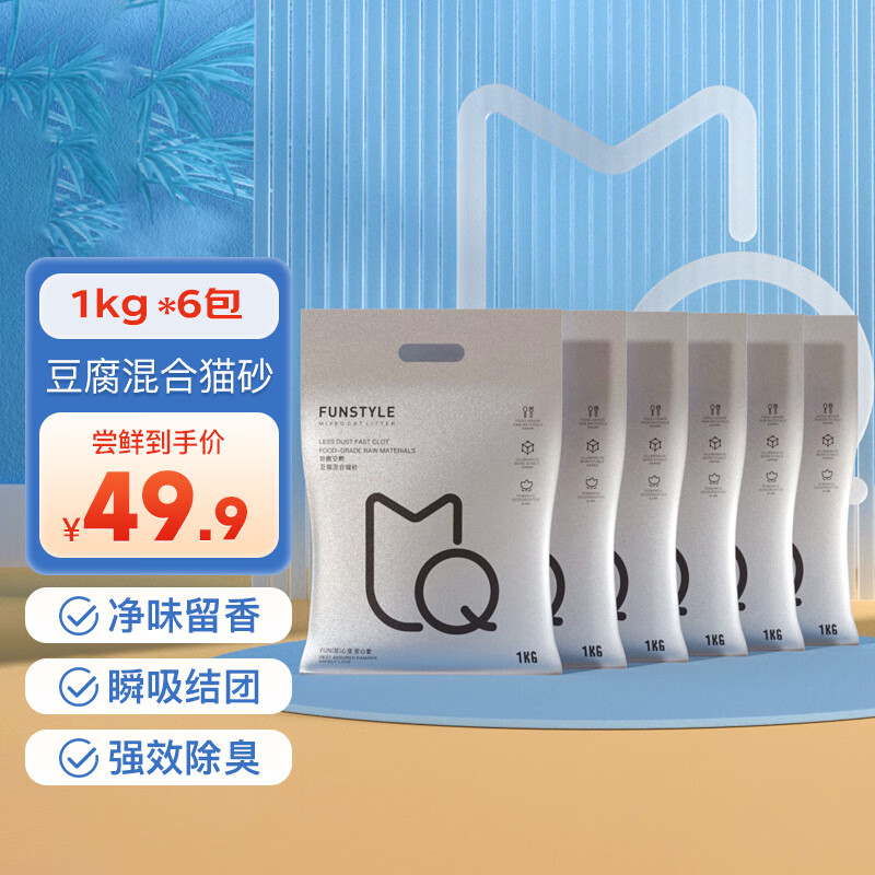 妙趣空格Funstyle豆腐砂混合抑菌猫砂原味除臭无尘幼猫宠物用品 经典混合猫砂1kg*6