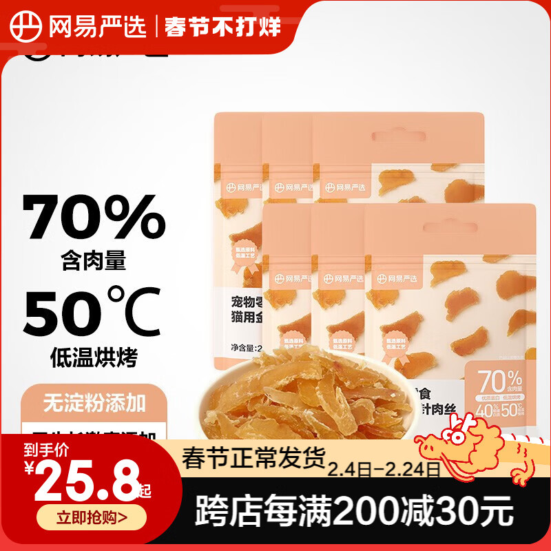 网易严选 肉香浓郁 鸡肉金针软丝 猫咪零食营养增肥逗猫 25g*6袋