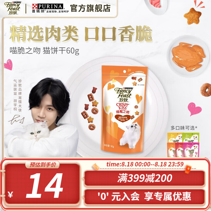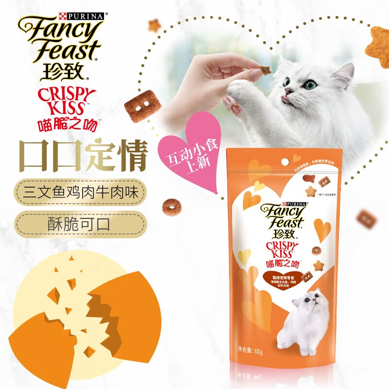 珍致(FancyFeast)猫零食 猫饼干喵脆之吻唇齿留香 海洋鱼鸡肉牛肉味60g