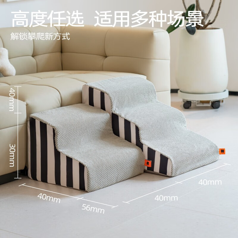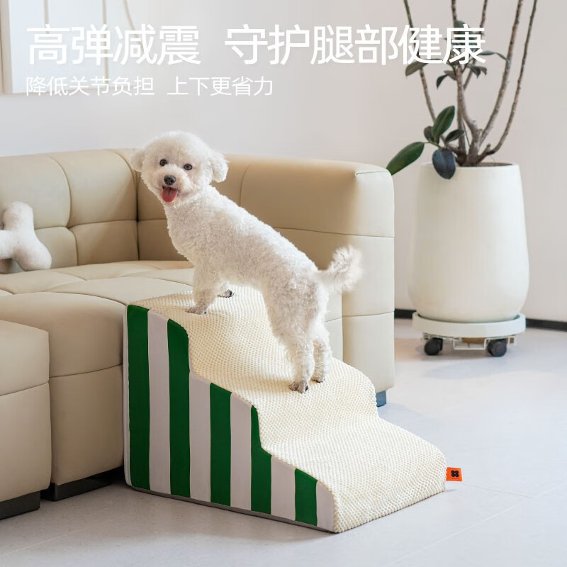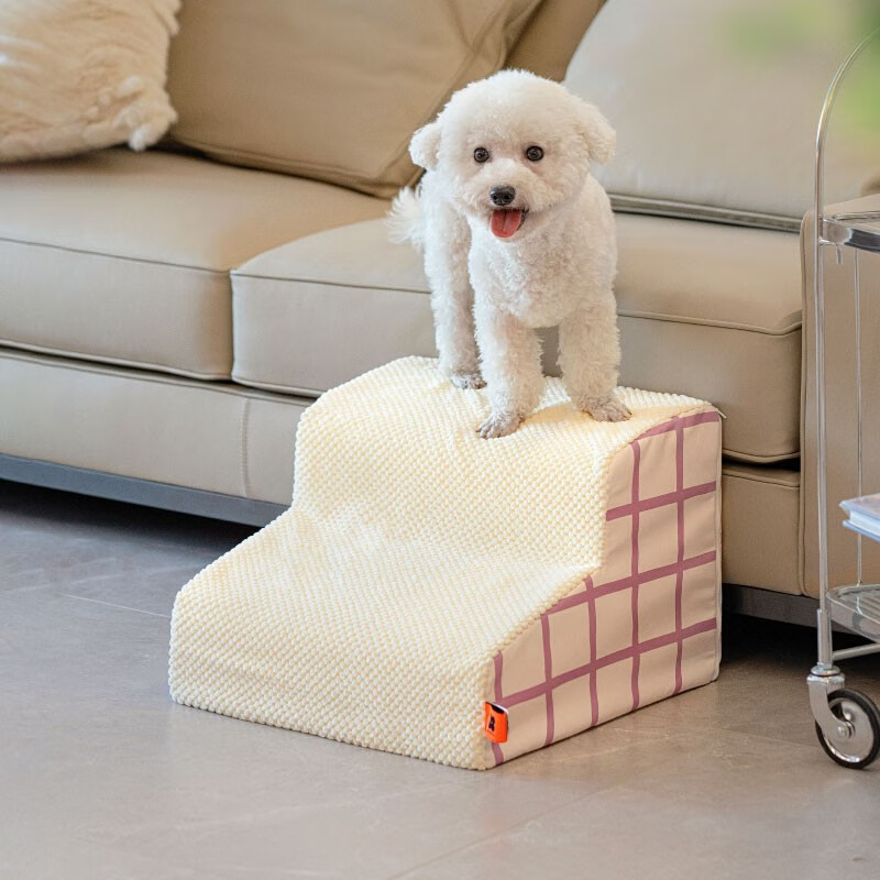喵乎汪也狗楼梯台阶上床斜坡狗用床边沙发宠物老年小型犬上下楼梯狗狗爬梯 治愈紫白格-三阶 可拆洗外罩