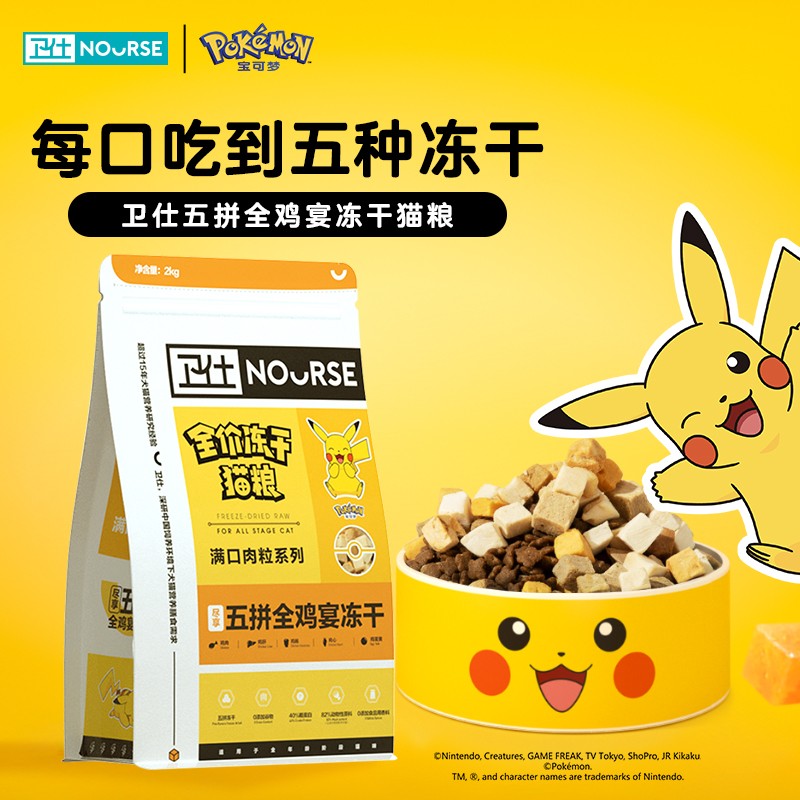 卫仕 | 宝可梦联名五拼冻干猫粮 全阶段 幼猫 成猫 通用猫粮2kg 五拼冻干全鸡宴猫粮2KG(满口肉粒系列
