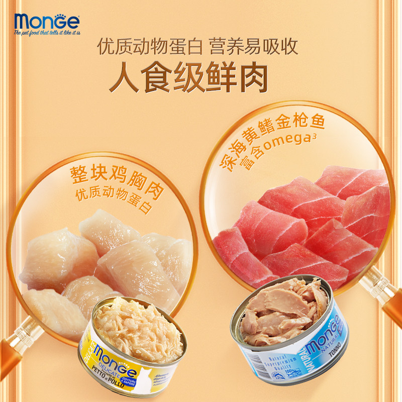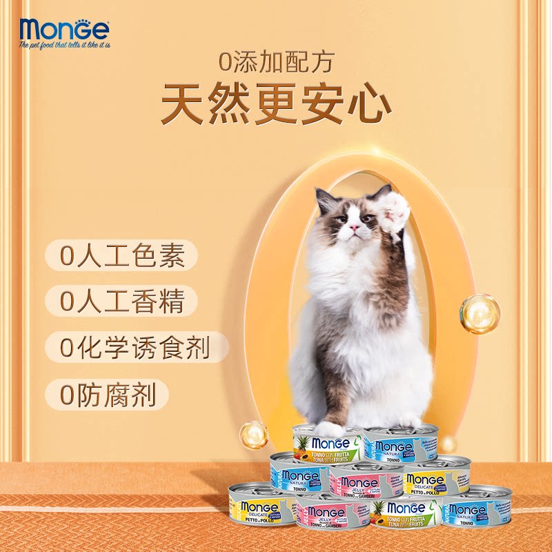 意大利MONGE梦吉猫罐头天然系列金枪鱼水果猫湿粮零食80gx24罐