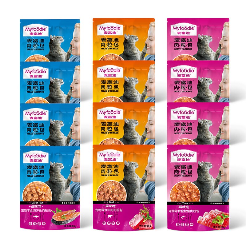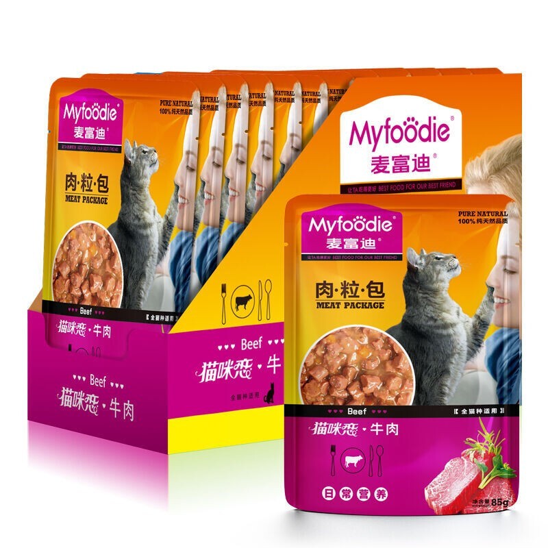 麦富迪猫零食湿粮妙鲜肉粒包 猫咪恋整盒成猫幼猫湿粮猫咪零食 牛肉味 85g*12袋