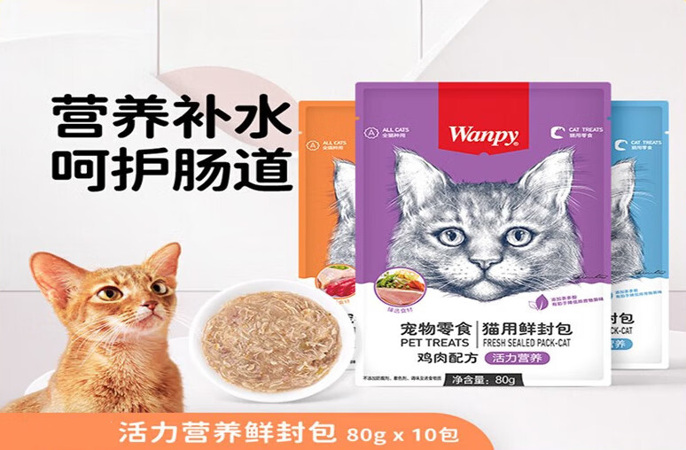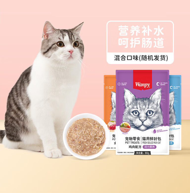 爱肯拿(ACANA)成幼猫罐头增肥发腮营养猫咪零食妙鲜猫湿粮包条 混合口味(随机发货) 1盒80g*10袋
