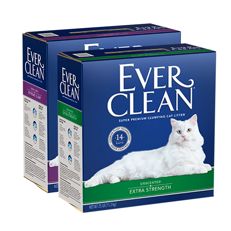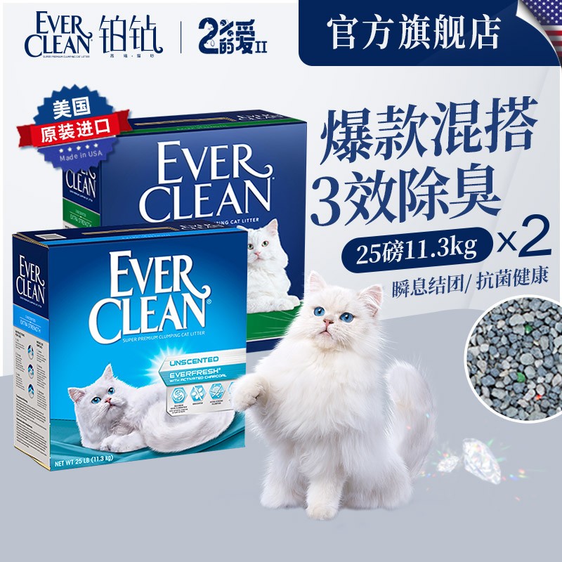 铂钻EverClean猫砂【换砂周期长、频次低、成猫单包可用45天左右】膨润土无尘 活性炭除臭猫砂 蓝白25磅 绿25磅