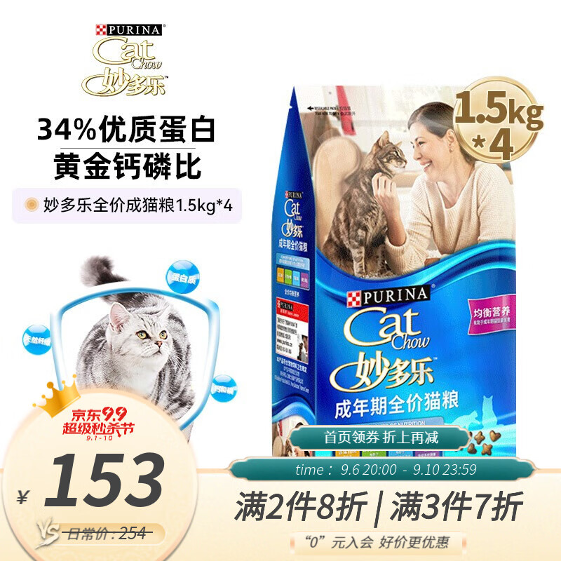 妙多乐猫粮 成猫老年猫粮 均衡营养 英短美短蓝猫通用型 1.5kg*4 成猫粮(2段大于12个月)
