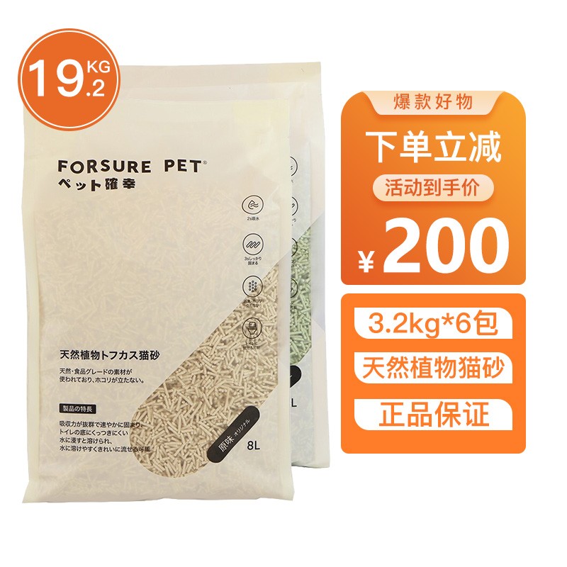 宠确幸豆腐猫砂 可冲厕所无尘不粘底小颗粒原味豆腐猫砂快速吸水 强力结团 3.2kg*6包