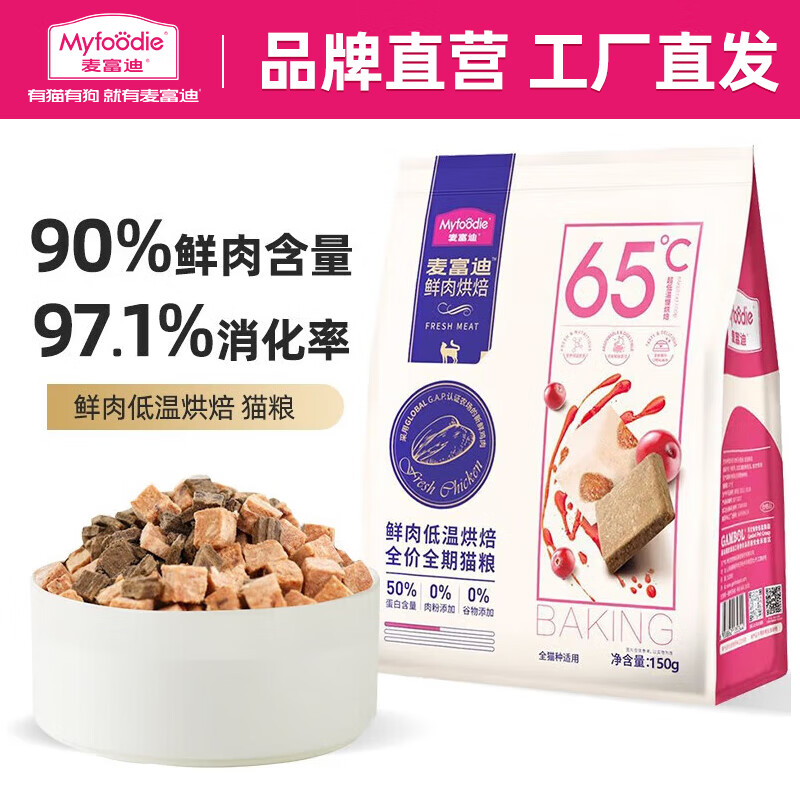 麦富迪 猫粮 65℃鲜肉低温烘焙粮成猫幼猫全猫种通用全价全期猫粮 试吃包150g
