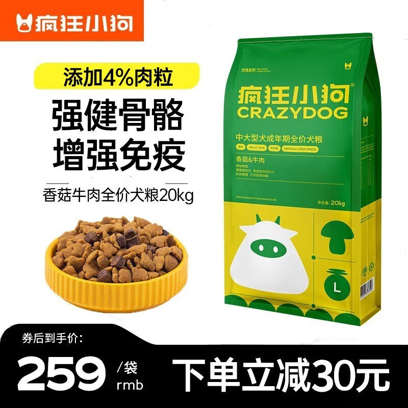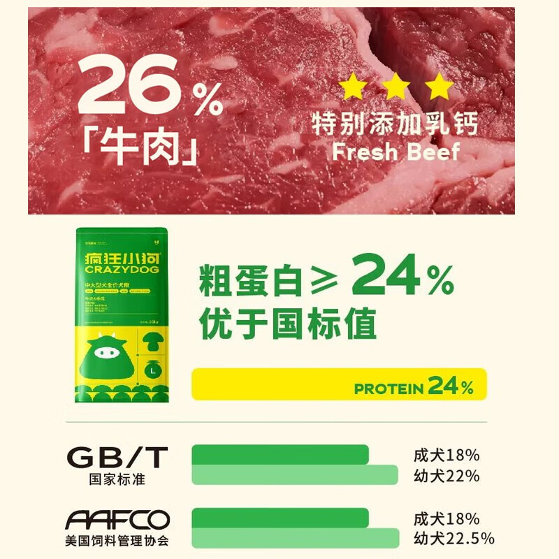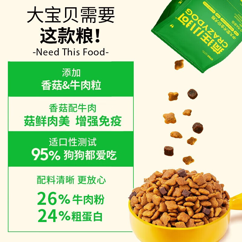 疯狂小狗狗粮中大型犬香菇牛肉宠物金毛哈士奇边牧全犬期全价双拼粮 【肉粒双拼】中大型犬粮40斤