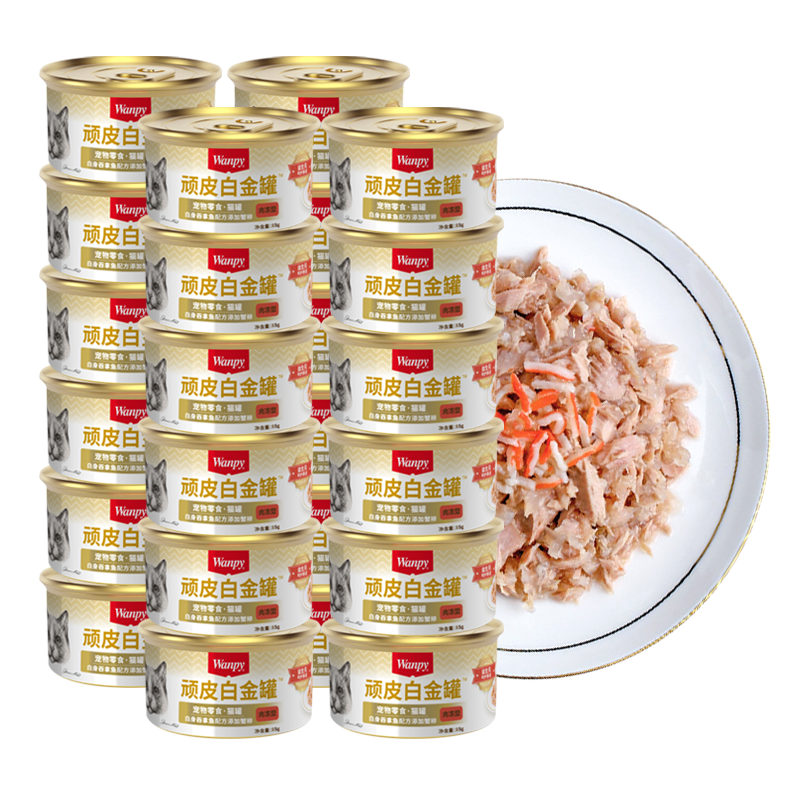顽皮(wanpy)猫罐头白金罐泰国原装进口85g 白身吞拿鱼配方添加蟹柳85g*6