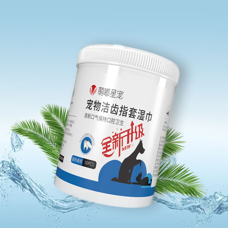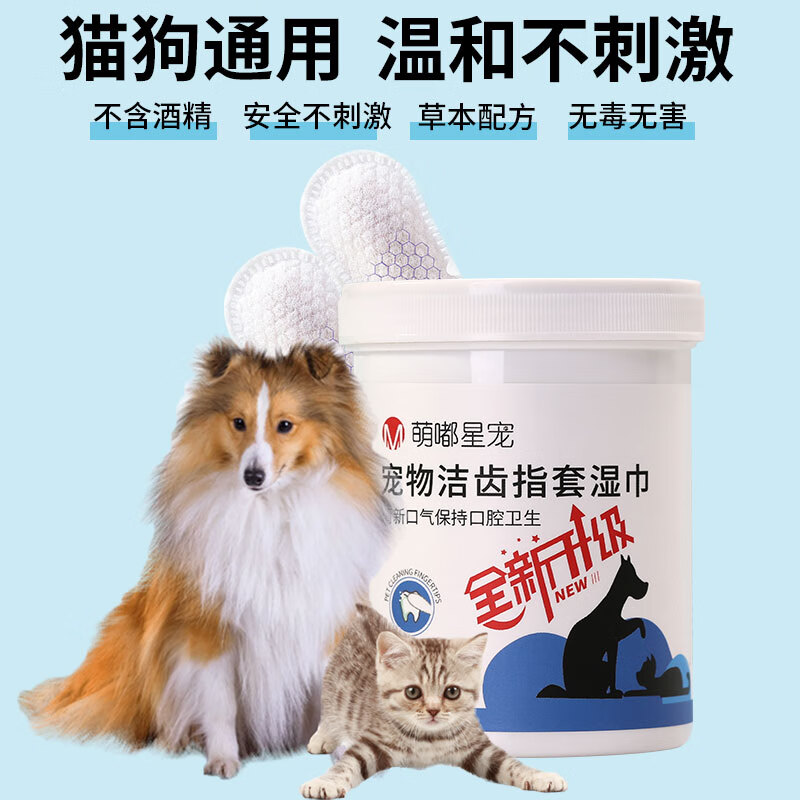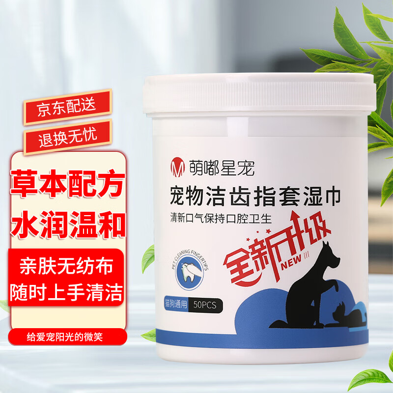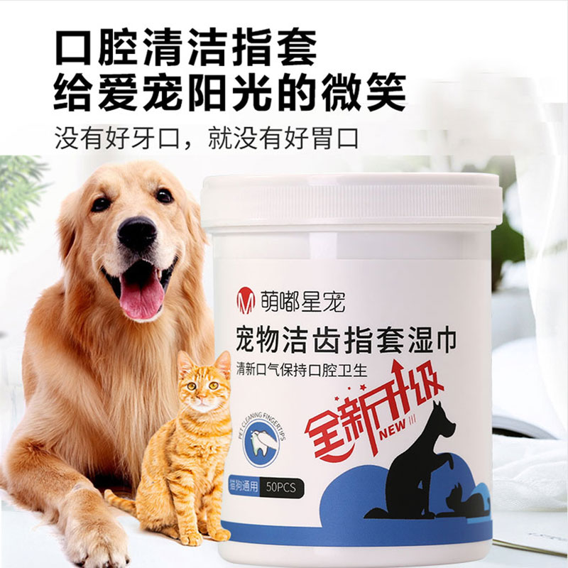 萌嘟星宠 狗狗猫咪刷牙手指套免洗手套湿巾猫牙刷牙齿清洁祛除牙垢干洗口腔异味一次性 50片