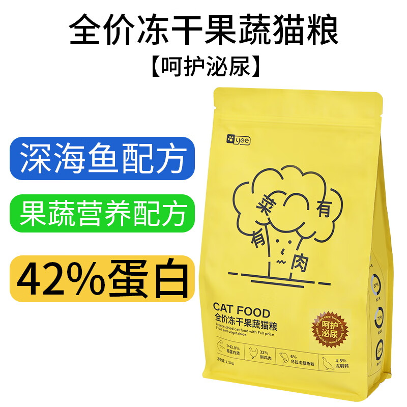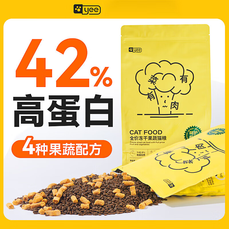 YEE冻干果蔬猫粮全价全阶段成幼猫营养高蛋白低敏无谷鲜猫粮猫饭 全价冻干果蔬猫粮6袋装呵护泌尿 1.5k.g/袋