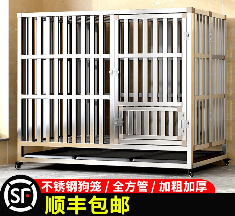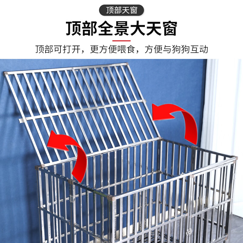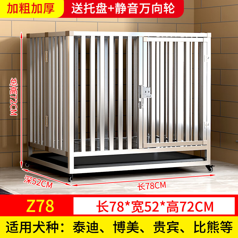 笼趣不锈钢笼中型犬狗笼子带厕所方管室内单层宠物金毛中大型犬 长78宽52高72 折叠款 泰迪 博美 破损苞赔