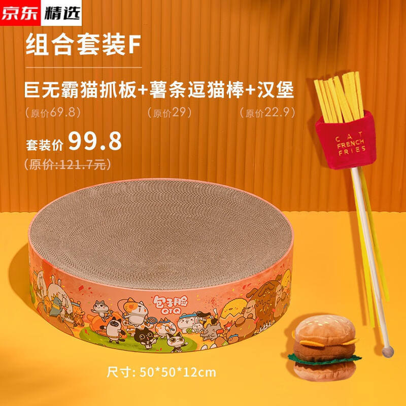 新型魔法风琴猫抓板包子脸猫抓板猫爪板磨爪器猫窝瓦楞纸耐磨窝猫咪用品玩具碗 限量版巨无霸套餐【巨无霸猫抓板 薯条逗猫棒 汉堡】