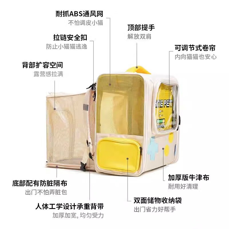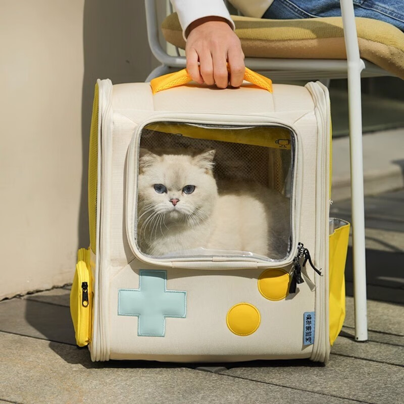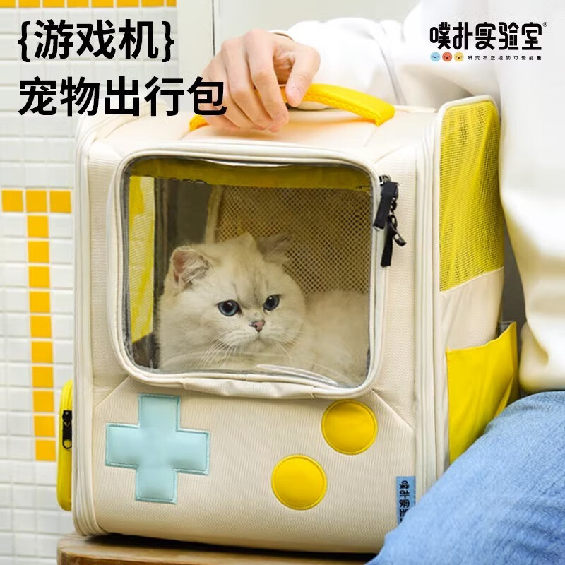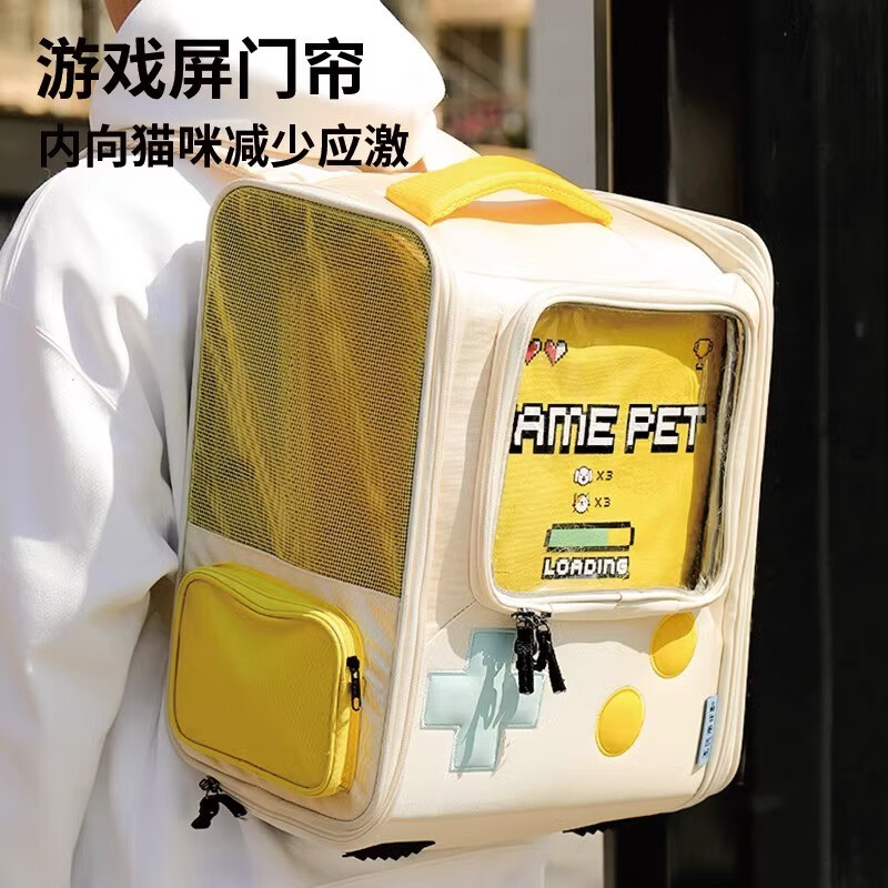 噗扑实验室(purlab)游戏机复古风宠物猫包外出便携双肩包可折叠大容量猫狗出行窝 奶油白 【35*41*22cm】18斤以内猫咪适用
