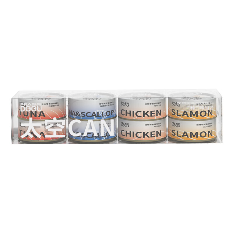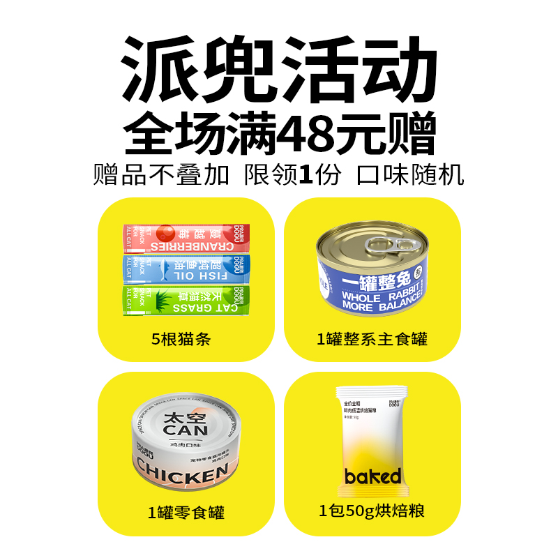 派兜(PRADOOU)50g烘焙猫粮*1 猫条*5 猫主食罐*1 CAN系列猫罐头*1(全部口味随机)