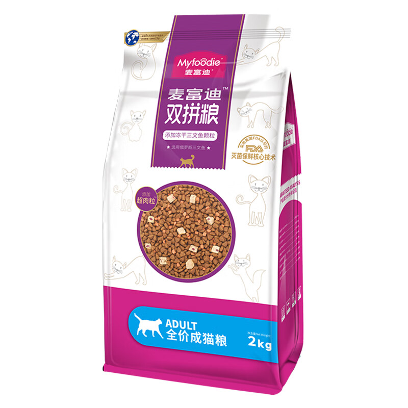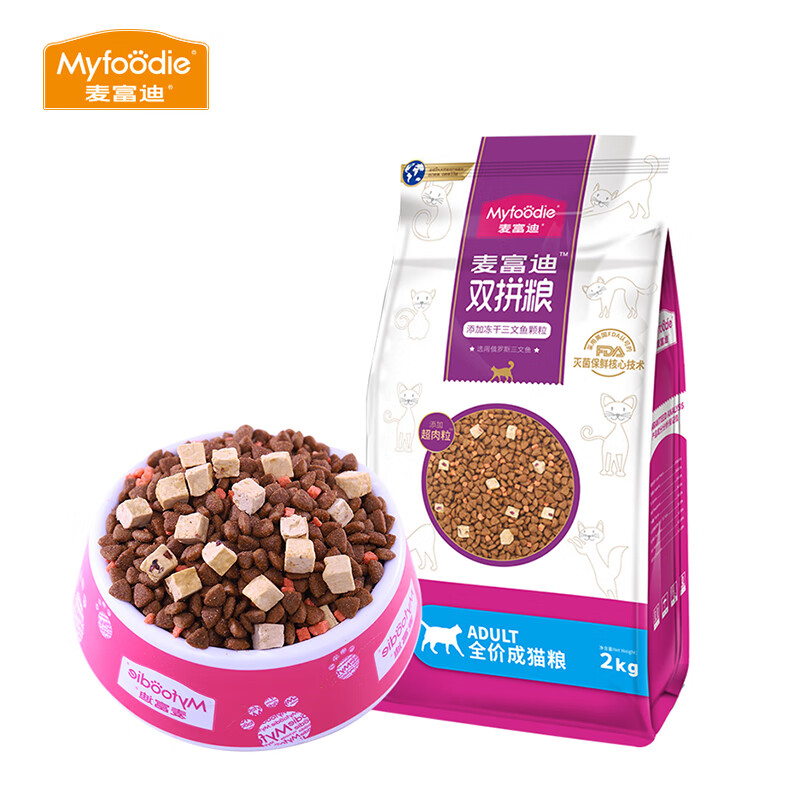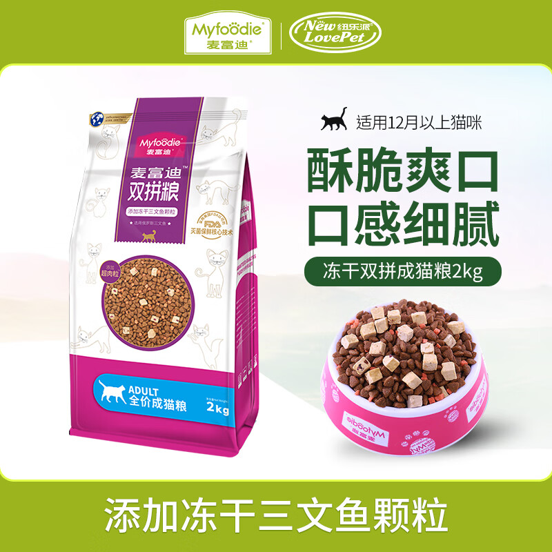 麦富迪冻干猫粮 三文鱼双拼室内猫英短蓝猫布偶通用型猫主粮 成猫粮2kg