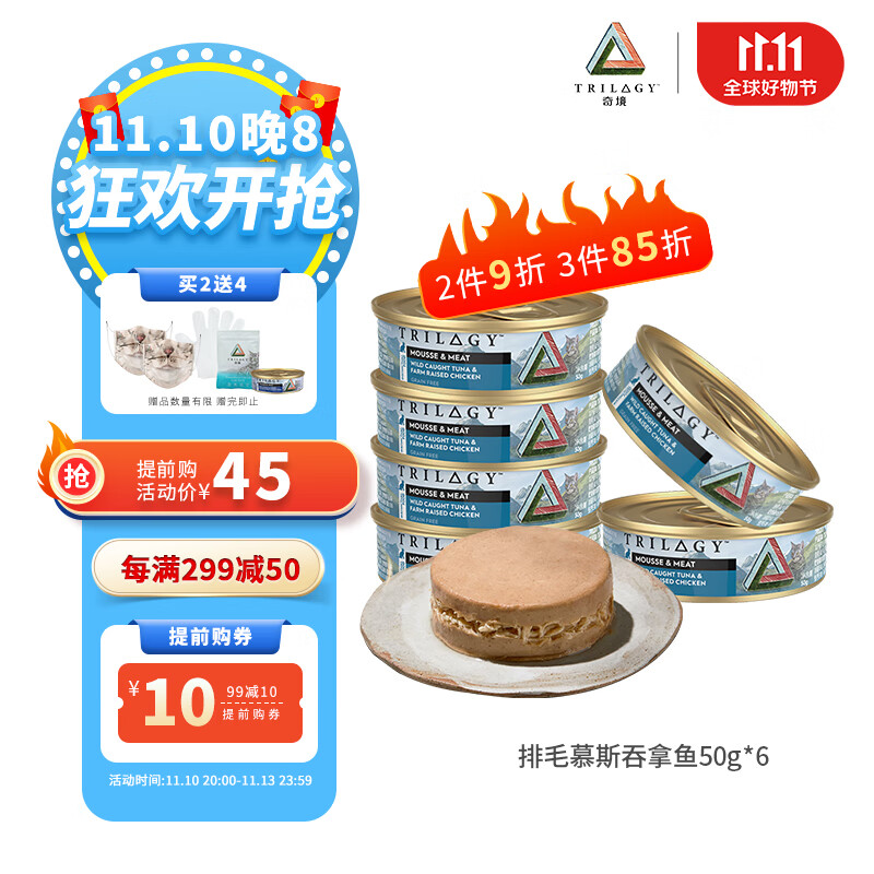 奇境(Trilogy)猫零食排毛慕斯罐营养猫罐头 金枪鱼配方 50g*6