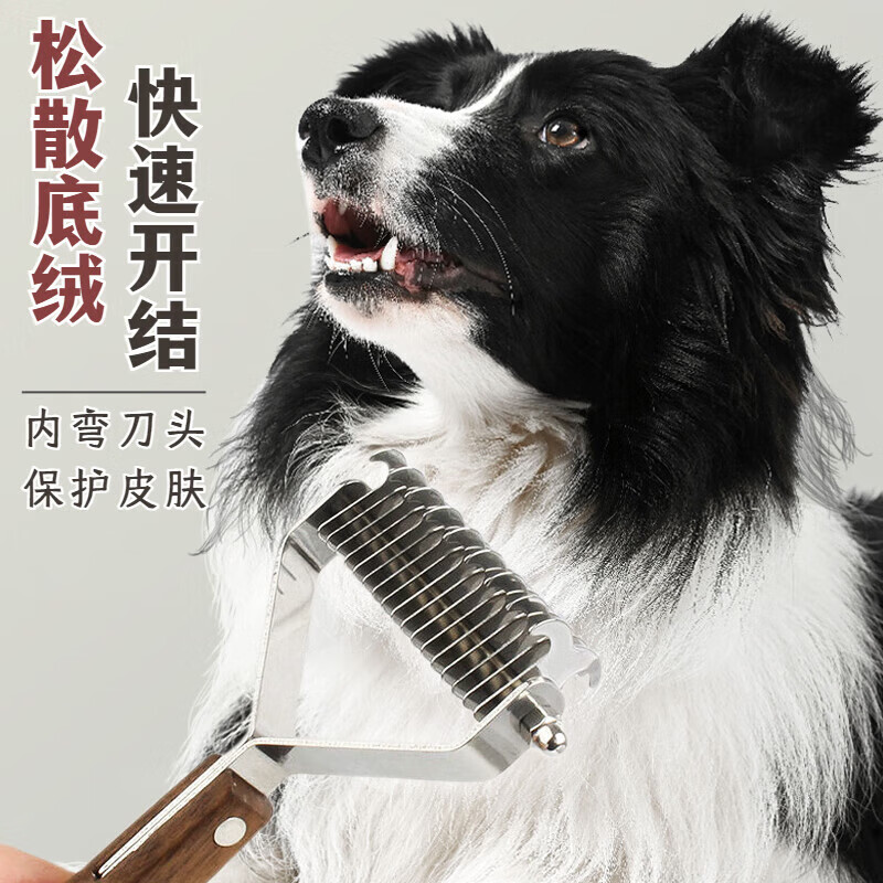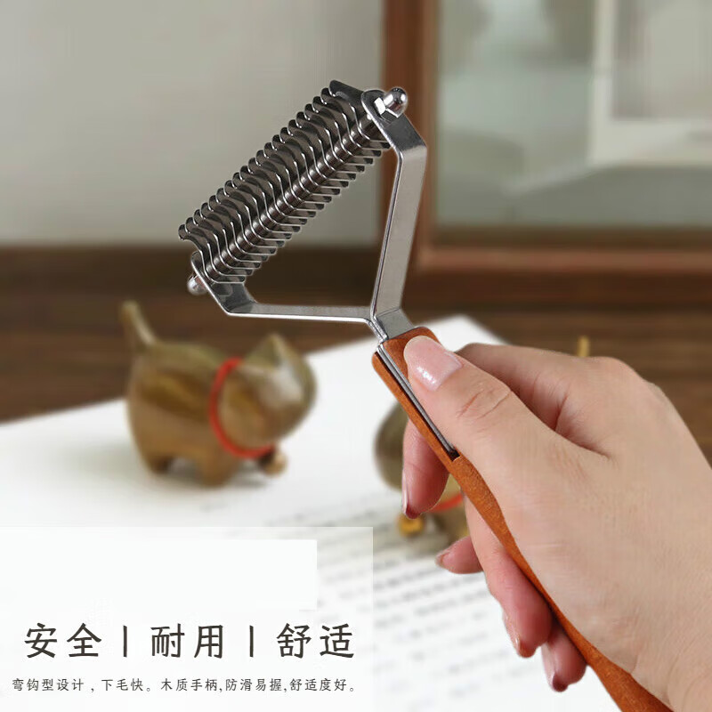 热慧宠物梳子高档胡桃木开结梳去浮毛解结梳狗耙梳去毛大型犬猫狗梳子 深棕色 木质款-20齿开结浮毛两用