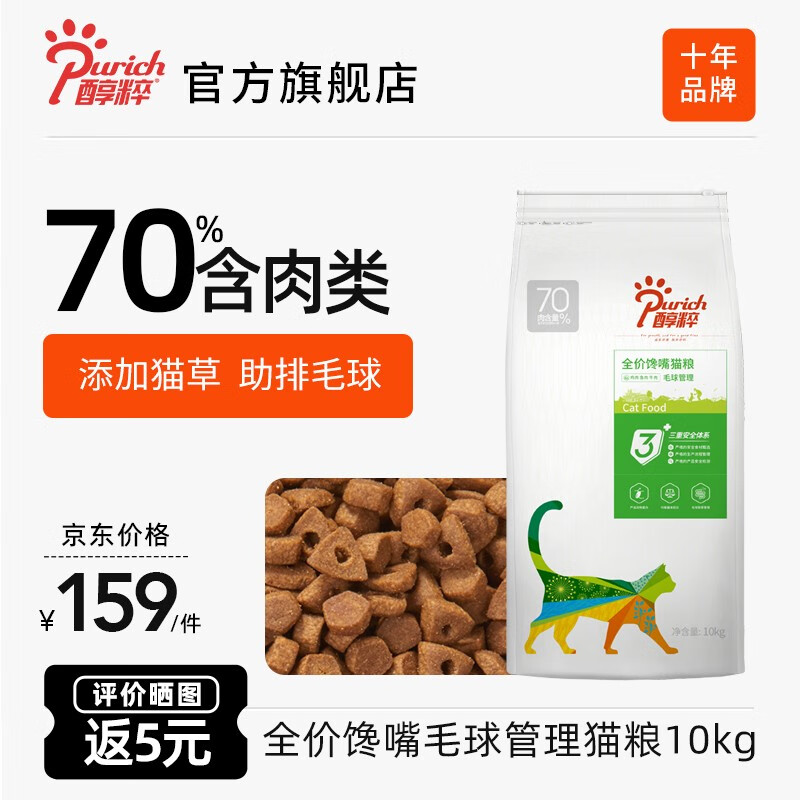 醇粹猫粮 幼猫成猫全价猫粮纯粹猫粮 英短美短布偶折耳加菲老猫粮 毛球管理 10kg