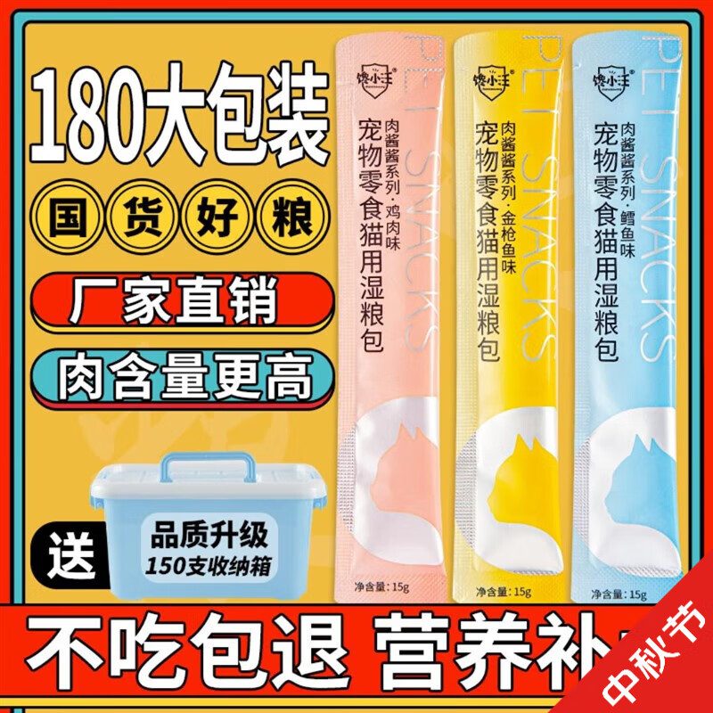 疯狂小狗品质德国品质 猫条猫零食营养条湿粮包猫罐头增肥发腮补水成猫幼 180支混合口味超值量贩装 15g