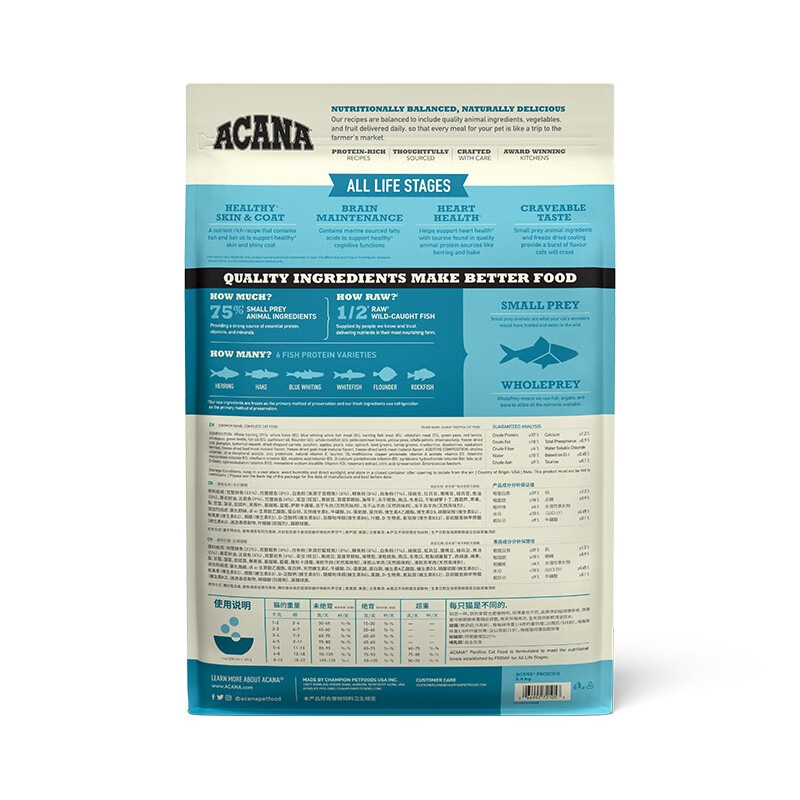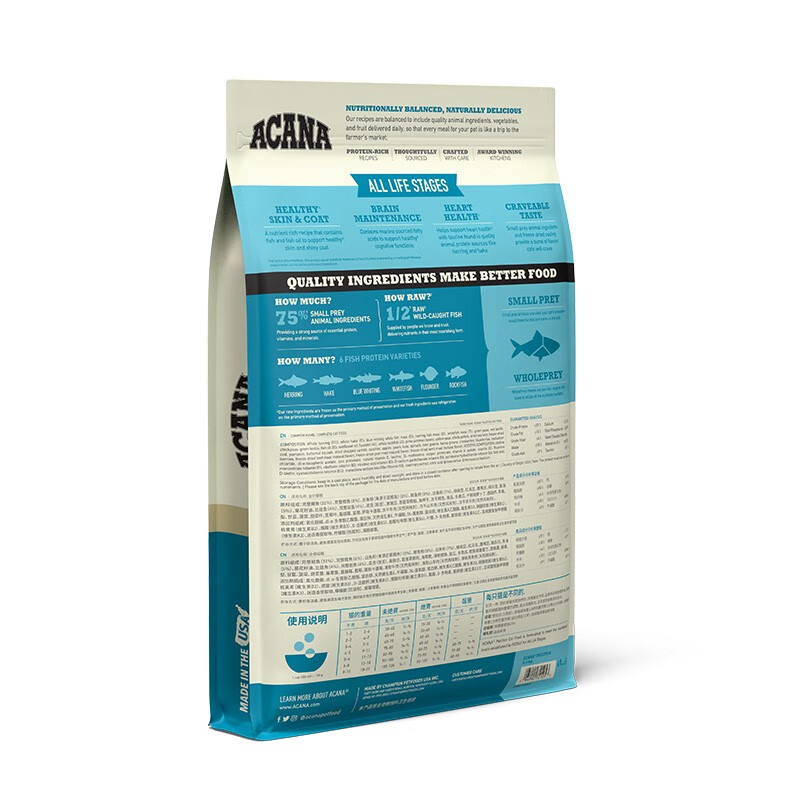 爱肯拿(ACANA)猫粮加拿大进口ACANA天然幼猫成猫全价猫通用猫粮 海洋盛宴5.4KG猫粮