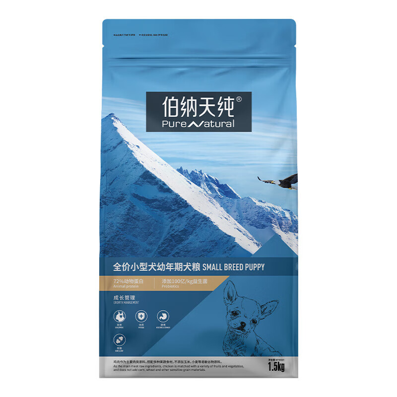 伯纳天纯狗粮小型犬幼犬专用粮比熊柯基法斗泰迪通用天然粮1.5kg 小型犬幼犬专用鸡肉鱼肉混合口味 1.5kg