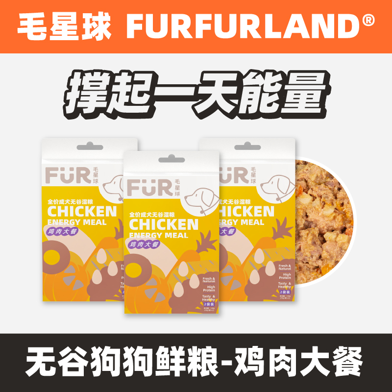 FurFurLand毛星球纯肉鲜粮成犬狗狗通用湿粮组合柴犬法斗泰迪柯基 鸡肉大餐3盒装