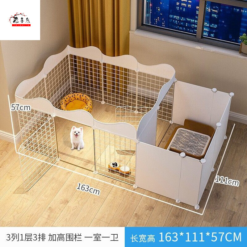 极墨 狗狗围栏宠物小型犬家用博美泰迪室内栅栏护栏狗窝带厕所区狗笼子店长推荐 『163*75*57,20斤内』一室一卫 白 基础款【加固扣 扎带 换新 围栏】