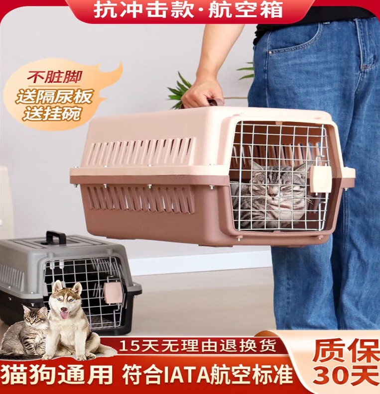 PETIO TOGETHER YOUR PRECIOUS LIFE宠物航空箱猫咪外出便携式猫笼中型小型犬狗狗航空箱托运专用狗笼 咖啡色(送挂碗 隔尿板)带提手 1号箱12斤内犬猫