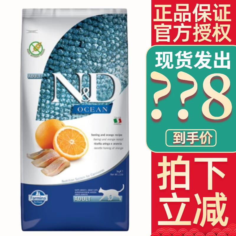 法米娜farmina猫粮法明娜精华无谷猫粮意大利进口成猫猫粮鸡肉鱼肉 鲱鱼甜橙成猫粮5kg日期新鲜