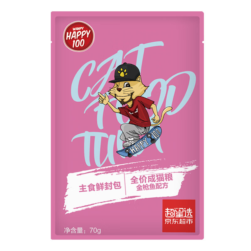 顽皮(Happy100)主食鲜封包 全价成猫猫粮 金枪鱼配方70g(JD)