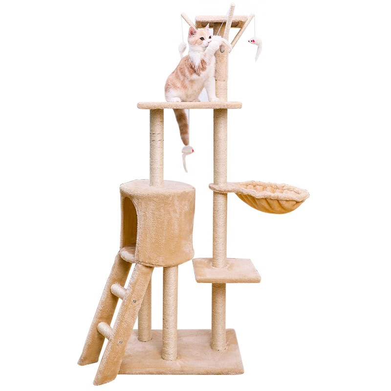 美悦宠物猫爬架猫窝猫树通天柱一体抓板多层跳台抓柱猫咪玩具剑麻窝具用品 1.38米 米色多层猫爬架