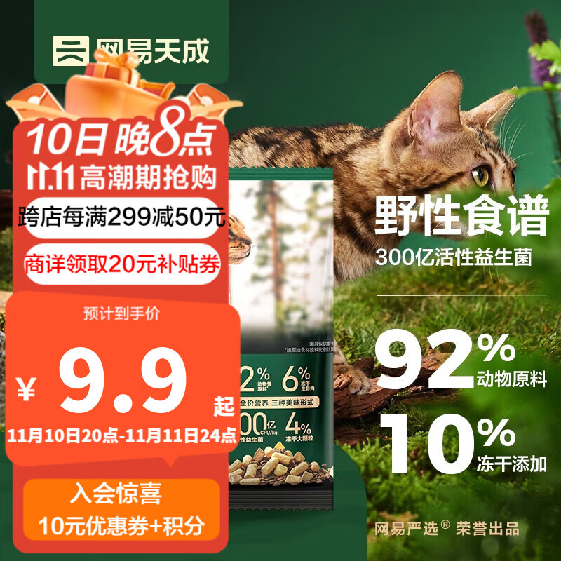 网易严选冻干生骨肉三拼猫粮 高肉含量益生菌主粮幼猫成猫全价 50克/袋