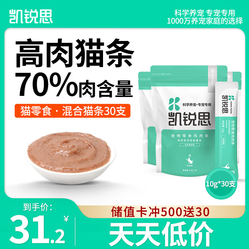 凯锐思猫咪零食鱼肉条猫条幼猫成猫孕猫增肥发腮专用食品罐头湿粮30支